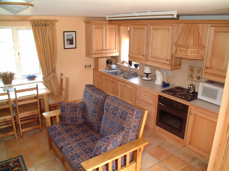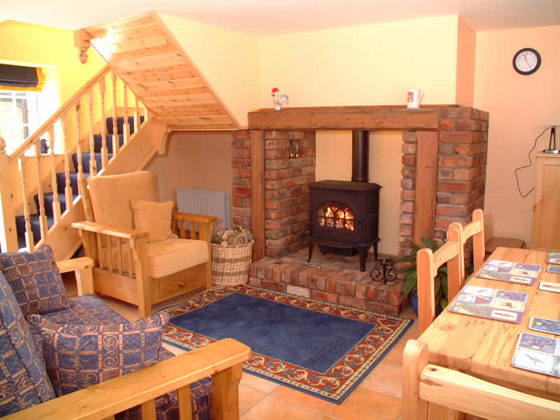A rustic fireplace with wood burning stove complements the oil fired central heating. All modern appliances including digital satellite TV, video and mobile phone are provided. |